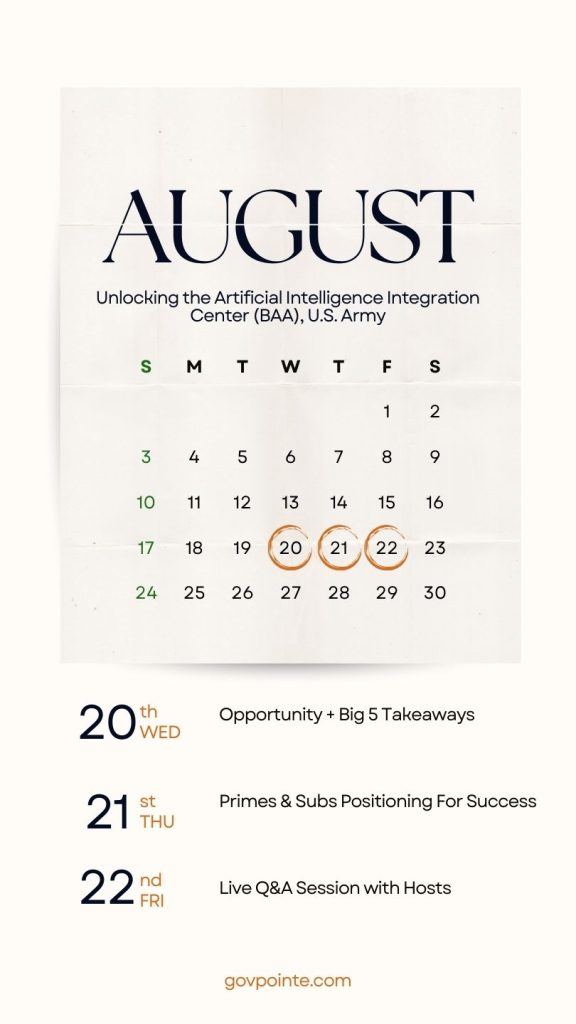 From white paper alignment to teaming strategy, this series is designed to give SMBs smarter, more strategic positioning in one of the Army’s most important AI modernization efforts.